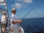 Although the sharks should move out of the Bay when the weather cools off, the kingfish should show up.Sharks love to feed on kingfish.You can catch a few kingfish off the beaches, cut one up, and put it back in the water for bait for sharks.Do that and you’ll catch a big one.Please visit www.castawaychartersinc.com and book your trip today!