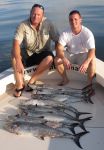 This past week has been nothing less than the norm for October, low humidity and fast fish action.The gulf water temperature is perfect right now, yesterday it was 77 degree.Things are really firing up.It doesn’t matter if you are inshore or off, the action is fast.Bait is everywhere and thick as thieves offshore, on the beach, in the passes and on the flats and the fish is gorging themselves.The kingfish are the big prize offshore right now.Yesterday we did and half day in the afternoon we caught 10 to 20 pounders consistently the whole time with no lag in the action.We lost a few larger ones, one that was a solid 30 pounder we that we had up to the boat.My largest this past week was probably close to 35 pounds.The king fishing is peek right now.The grouper are also biting as well as the snapper on the bottom.That last blow brought a lot of fish in closer; no longer do you have to make that 20 mile run for good grouper fishing.There is plenty of fish in the bay to 10 miles out.There have also been a number of sails mixed in the bait within 10 miles, so who knows there is a chance while king fishing to catch a sailfish.There are also a few rumors of some large permit floating around. I tried to find them in that calm water yesterday but was unable to maybe later this week I will catch up with them.