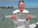 This monster ate one of his many shrimp variations. We see beasts like this on a regular basis. Of course getting one to take is another ball game. I firmly beleive that bonefish over 10 lbs are over 10 years old and not dummies. Luckily, inovative fly patterns and jigs have made things easier. Making the proper cast and feeding these 'wise old beasts' is the key. Experience goes a long way in bonefishing advanced fisheries but listening and doing exactly what your guide says can accelerate the learning curve even make your first outing a success! The thing to remember is that double digit bonefish fall into the 'fish of a lifetime' catagory and will be remembered for decades!