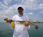 We decided to chase snook so we made a quick run over to Tampa Bay’s eastern shoreline. Tossing white baits we had not a hit in 15 minutes. Then the bite turned on and it was hit after hit from 25” snook for 20 minutes. It’s great to see quality snook action.