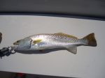 Leaving the mackerel biting I went to another protected area. Keying in on 6-8’ depth tight to a grass flat loaded with white baits had large trout schooled up. On 3 consecutive casts I took over 25“ monster trout.