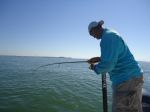 I jumped up onto my tower and started looking for birds between the bridge and Ft. Desoto. Once we passed Potters pier diving birds gave away our targets location and we jumped right in. We started with live white baits and quickly changed to Clark Spoons as the action heated up.
