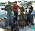 You’ve heard of the myth, “you can’t catch fish on a full moon”, well YEAH RIGHT Charters set out this past weekend to prove that myth wrong. After finding some good looking areas and anchoring up on them just right, these two groups loaded the boat with grey, silver, and vermillion snappers, large triggerfish, almaco jacks, amber jacks and groupers. The king mackerels and the mahi were caught on lite lines. As they say on TV, “MYTH BUSTED”.