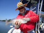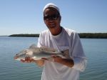 The tide had risen from .8 to 1.6’ and it was redfish time. Shrimp on a 2/0 circle hook with a small sliding sinker quickly brought our first red into the boat. Over the next 2 hours red after red inhaled out shrimp. The reds were very aggressive and while not big redfish the fight on light tackle was fun.