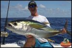 Over dinner last night Darin and I decided that for Day 2 we would run 30 miles NE to the tuna grounds. Rumors were that the yellowfin tuna were around so we took the gamble and made the big run in the morning. For the first 2 hours the only thing we caught was a tan until I spotted a group of birds. I headed in and ran circles around the birds, getting a bite on a horse ballyhoo using a 30-lb. rod. I was fighting a 50-lb. yellowfin tuna for 35 minutes, long enough for us to lose track of where the birds were. Searching for the rest of the day, it was around 5PM when I found them again and we ended up catching 7 yellowfin tuna. One fish that Darin caught on a 20-lb. spinner easily weighed in at 70-lbs. - minus the shark bite taken out of its side! During all the mayhem we had seen a Great White shark cruise along the side of the boat, no doubt grabbing a little free lunch. An awesome sight to end a great trip- it’s better in the Bahamas!
