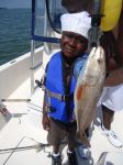 I loaded the live well with shrimp and threadfins for cut bait. Ben along with his sons Benjamin 7and Joshua 6 met me at O’Neill’s Marina for a 4 hour charter. Looking for clean water after torrential rains earlier in the week I knew would be key. We ran to a big deep grass flat on Ft. Desoto that was red hot last week. So much for red hot as the action was slow. Several small fish took our shrimp and cut bait but we mostly got robbed from Pinfish.