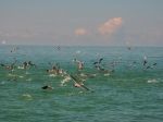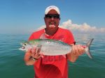 The onslaught first begins with Pelicans, Turns and Gulls pounding the surface to pluck any unsuspecting threadfin herring, glass minnow, ballyhoo, or scaled sardines off the surface.Once the maylay begins on the surface it’s only a matter of time before the speedy Bonita, Jacks, Mackerel, Bluefish, Cobia, and even Sharks get in on the action.Lately it has not been uncommon to have 3 or 4 of my anglers cast into these schools of feeding fish and all come back with a different species.As you can imagine this makes for quiet an exciting trip and did I forget to mention that these schools of fish will at times stretch to over 5 acres wide.If you did the math on 10ft of water x 5 acres of fish this = a whole lot of fish!!!!