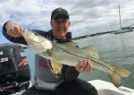 I like fishing on these cold fronts, especially when the core water temp stays below 63. It concentrates the fish, making them easy to locate in large numbers and there is no guess work to what they will be eating. Shrimp is their first choose when the water gets cold; they are slower moving and easy for the fish to ambush. The inshore action has been very good. I’ve had some of the best days on Trout this past couple of weeks that I’ve had in many months. We are catching all kinds of keepers in the 16 to 20 inch class, along with a few real nice ones up to 24 inches. Many days we have been catching 50 or more and at least half of them nice solid keepers. Along with Trout we have also been catching Redfish, Black Drum, Sheepshead, Flounder, and Pompano and yes even a few Snook. As a matter of fact a couple days ago we were catching Trout as fast you can reel them in when we hooked and lost a solid 38 to 40 inch Snook. The very next cast was a nice 29 inch Snook which we landed. Today on my morning trip we actually landed the 30 inch Snook, in the picture, he was mixed in with some big Trout and nice Black Drum just caught moments before. That is what I love about winter time; the fish are all mixed together in the same location and they all want a shrimp, so you never know what is going to bite next.